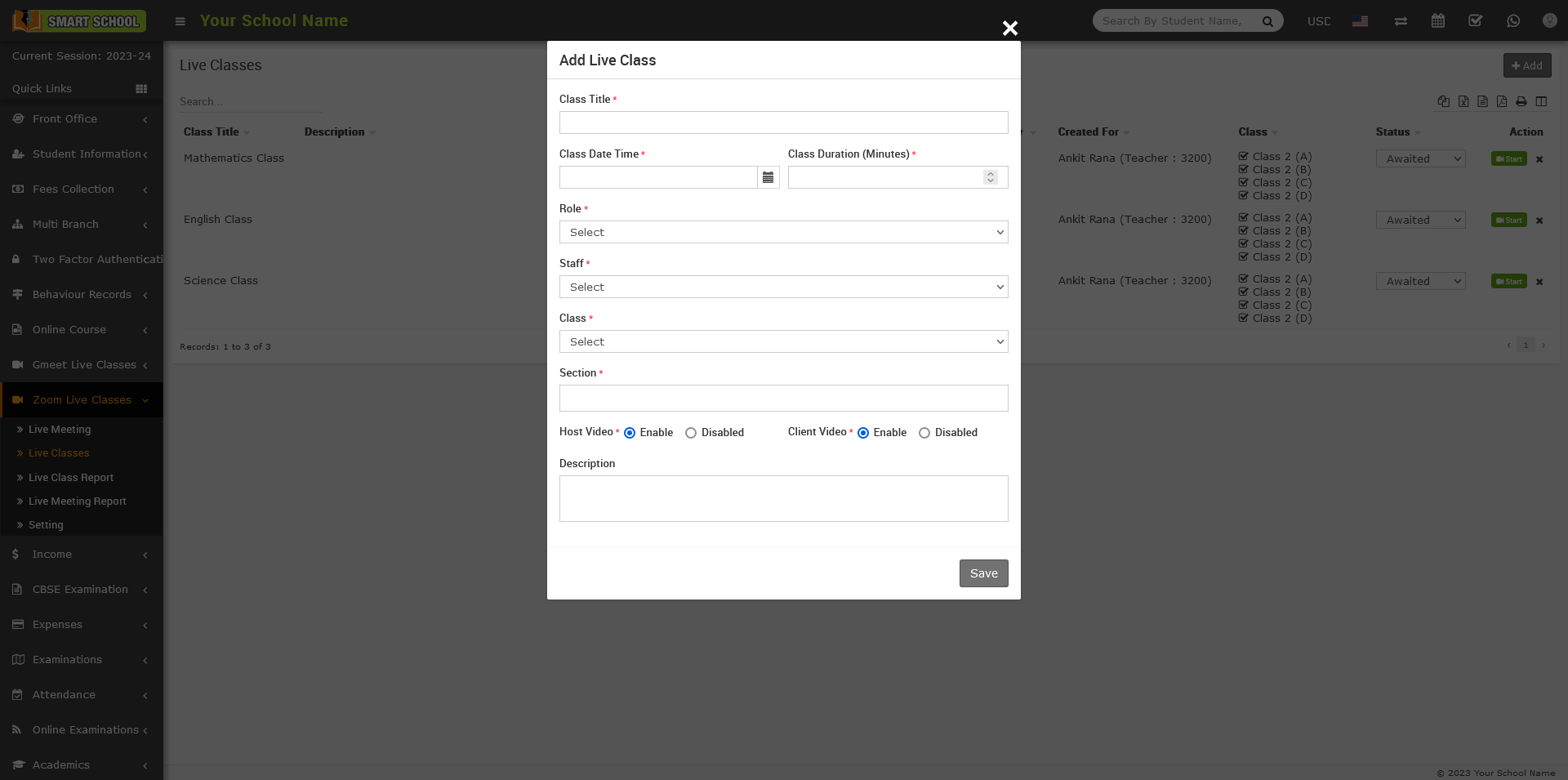 Note: Zoom Live Class is Smart School addon so to use it you should purchase separately and install it in your Smart School.