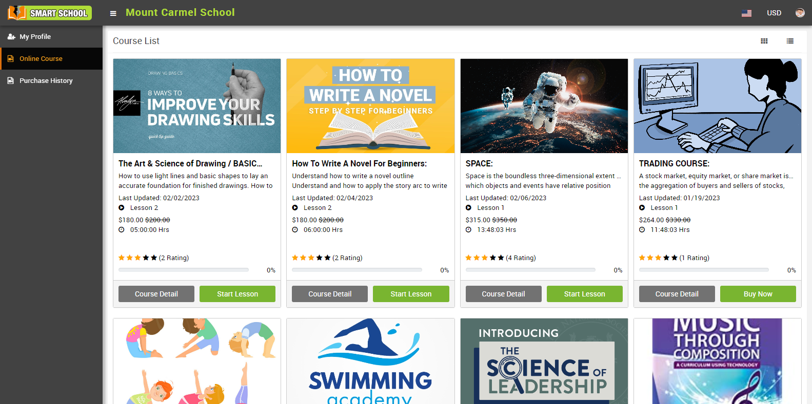 For ratings and review of online course, go to front page of Smart School > online course.