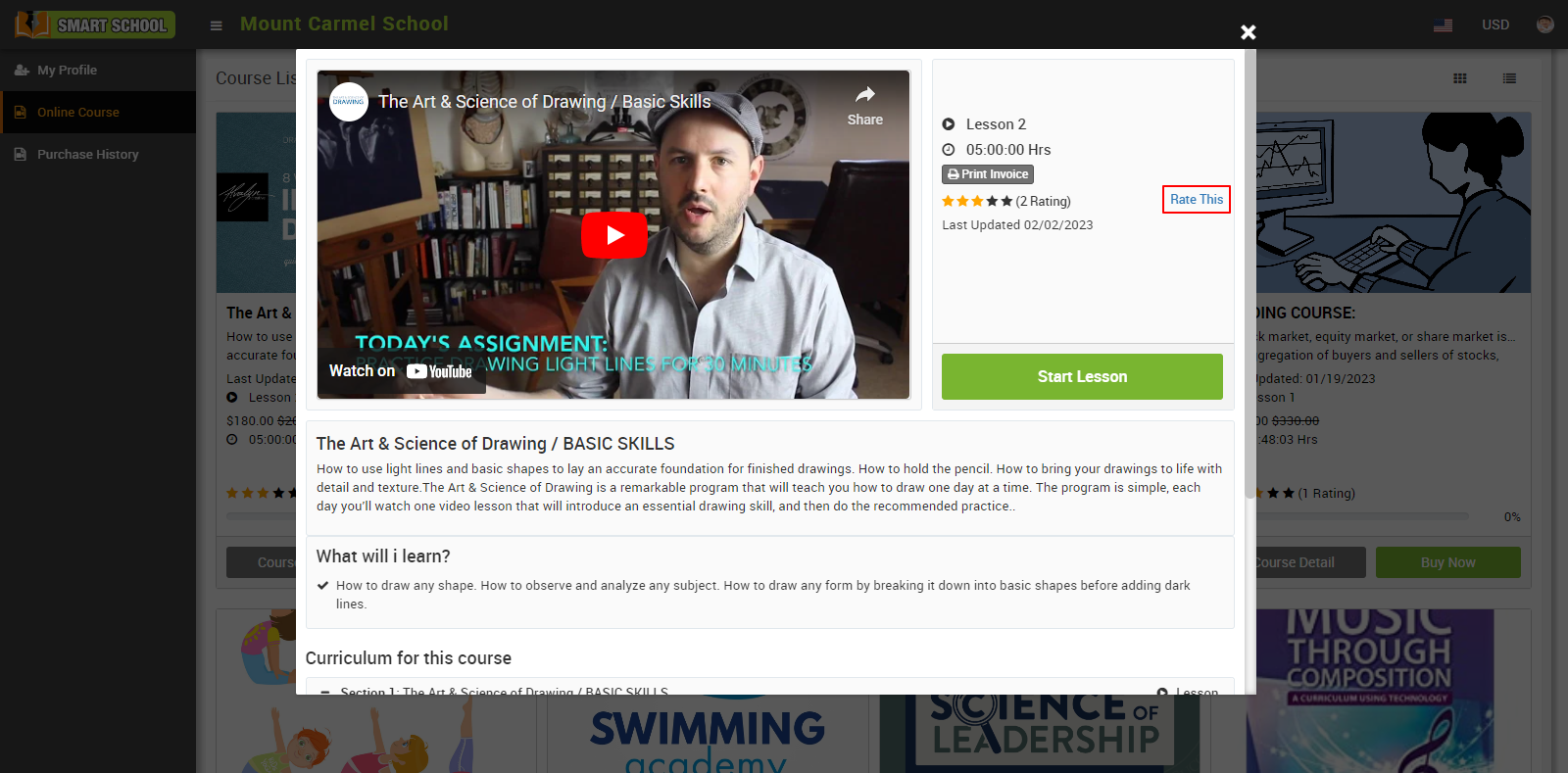 The course list is available on your student or guest ID. Now, select the course that you want to rate and review, and simply click on the Course Detail tab, which is shown below in the course so that course detail model will be open. In this model, you can see Rate This option showing at the right side, click on Rate This option.