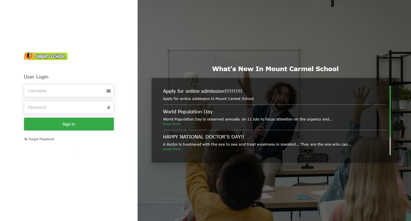 Enter the student's Username and Password, and then click on the 'Sign In' button to successfully login in to the student panel.