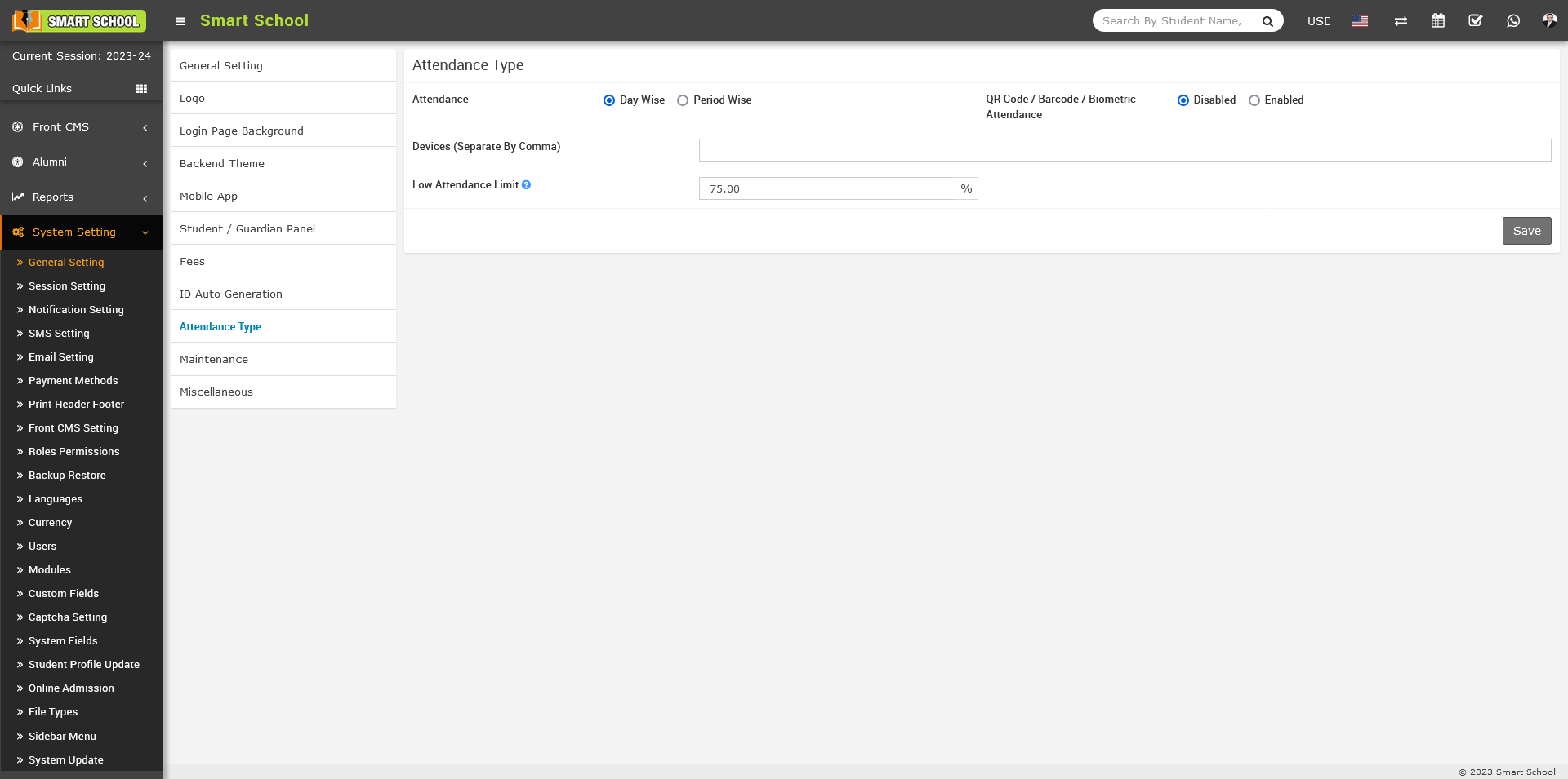 Note: - If you disabled the QR Code / Barcode and Biometric Attendance from the System Setting > General Setting > Attendance Type.
