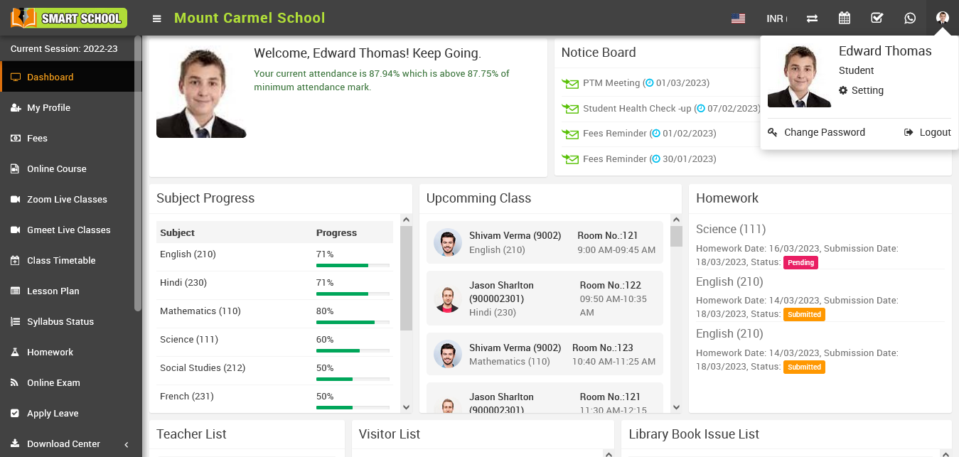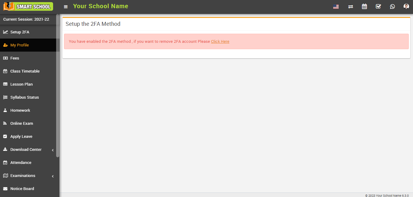 7. Now, open the Setup 2FA page, which is available in User Login (students or parents) > Smart School Top Right Corner Profile Image > Setting.