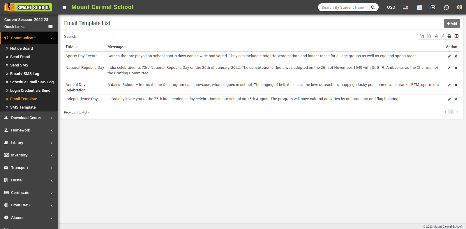 To create Email template, go to Communicate > Email Template, here you can view email template list.