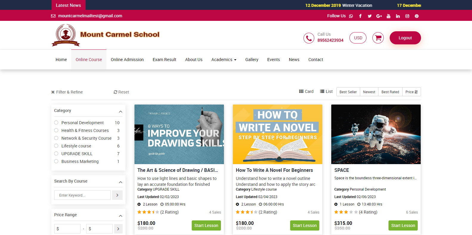 Now on this page, you can see the multiple online courses available. You can buy these courses.