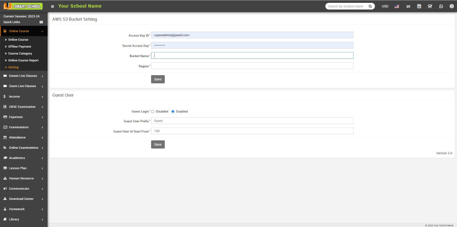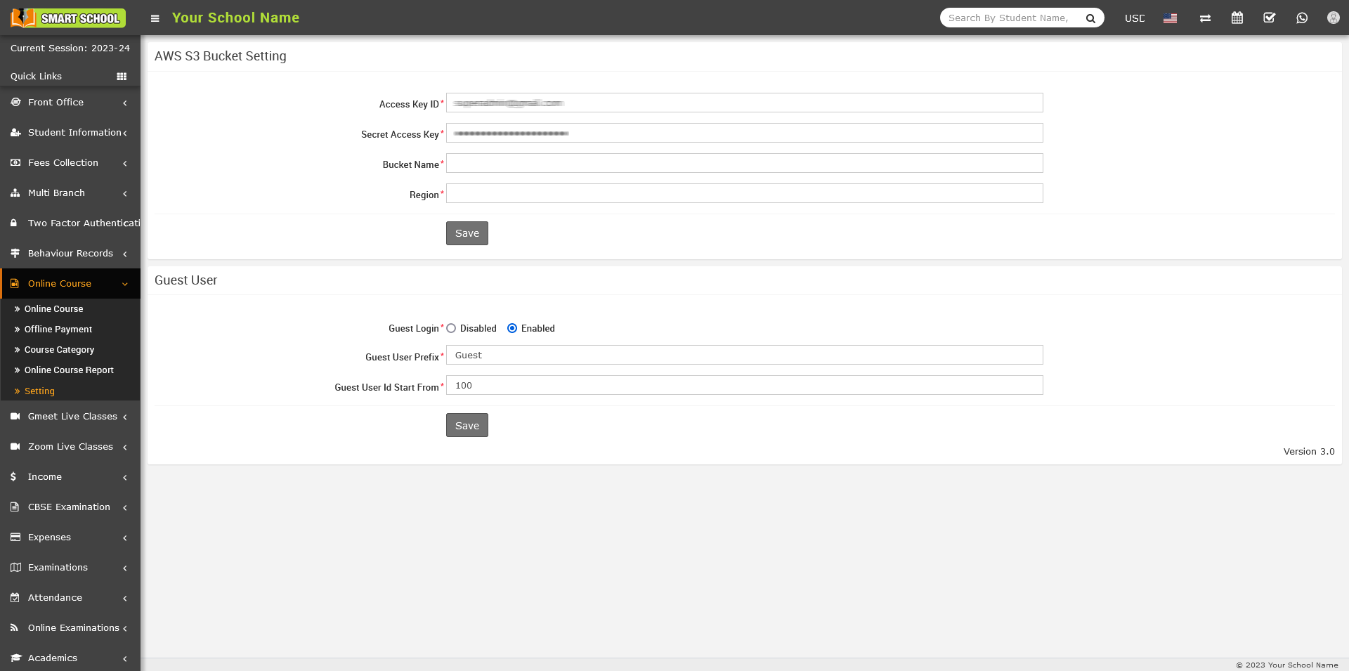 Now enter Access Key ID, Secret Access Key, Bucket name and Region in your setting page and then click on the Save button.