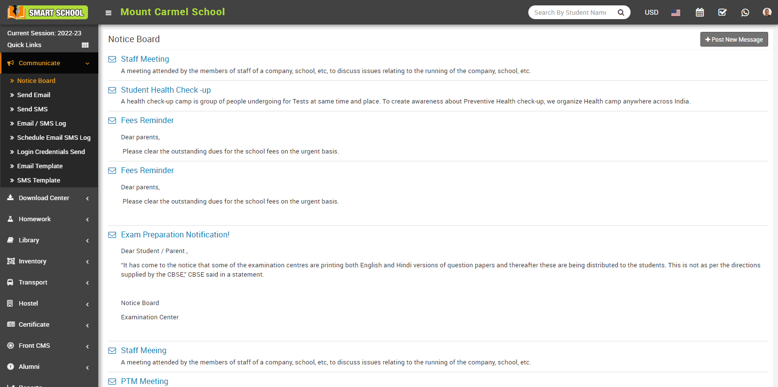 Now, click on Post New Message button showing at top right corner in the notice board page, at click of this button it will redirect you in the Compose New Message page.